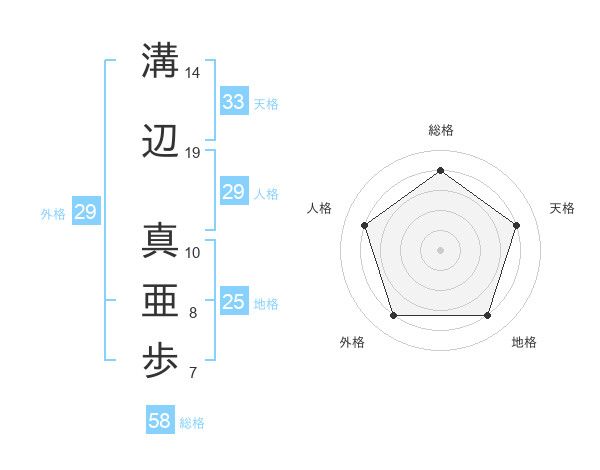 溝辺 真亜歩さんの総格は58画の4点!