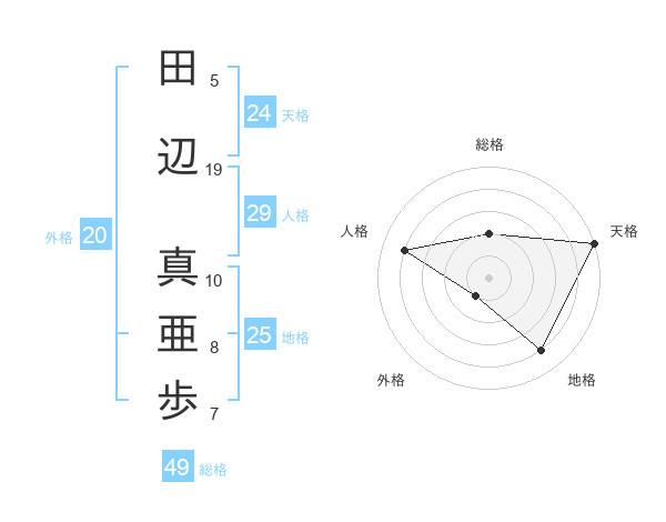 田辺 真亜歩さんの天格は24画の5点!