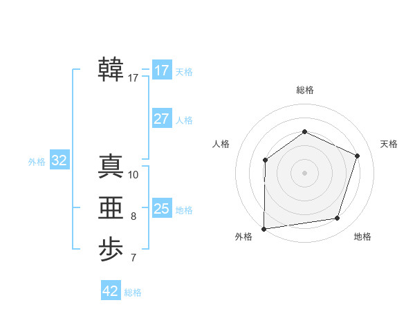 韓 真亜歩さんの総格は42画の3点!