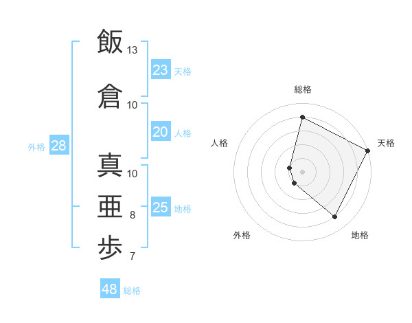 飯倉 真亜歩さんの天格は23画の5点!