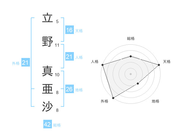立野 真亜沙さんの外格は21画の5点!