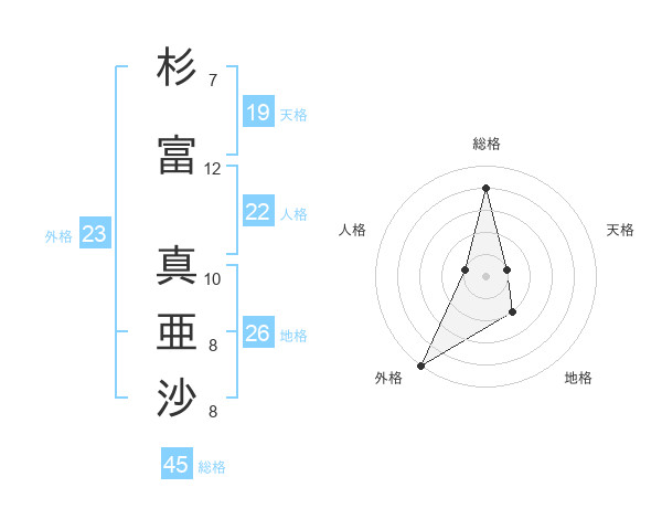 杉富 真亜沙さんを姓名の画数から五運を鑑定