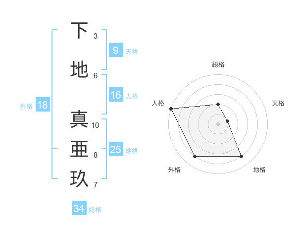 下地 真亜玖さんを姓名の画数から五運を鑑定