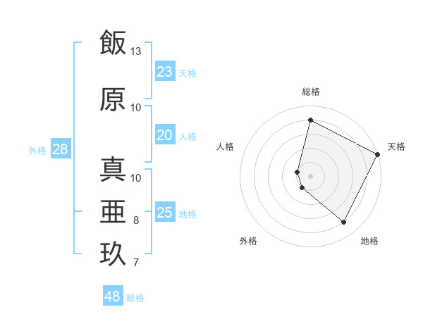 飯原 真亜玖さんの天格は23画の5点!