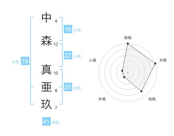 中森 真亜玖さんを姓名の画数から五運を鑑定