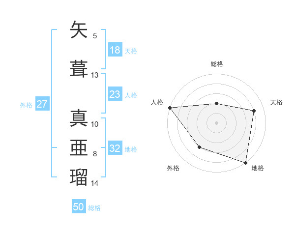 矢葺 真亜瑠さんの総格は50画の2点!