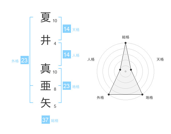 夏井 真亜矢さんを姓名の画数から五運を鑑定