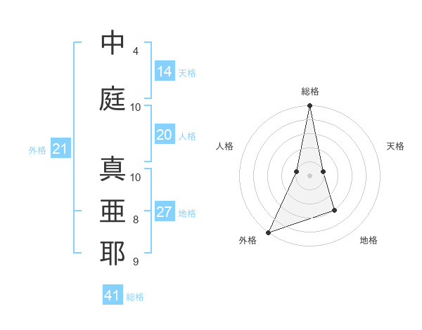 中庭 真亜耶さんの外格は21画の5点!
