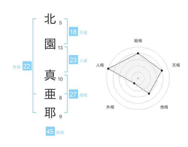 北園 真亜耶さんを姓名の画数から五運を鑑定