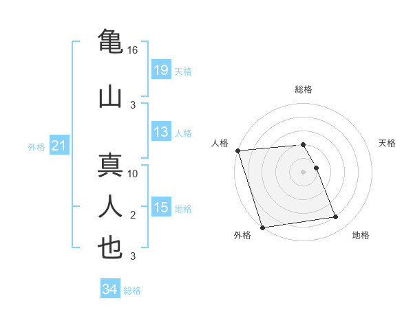 亀山 真人也さんの外格は21画の5点!