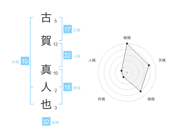 古賀 真人也さんを姓名の画数から五運を鑑定