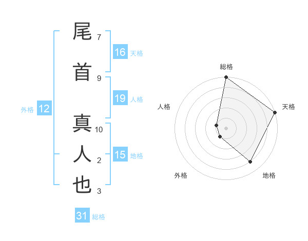 尾首 真人也さんの総格は31画の5点!