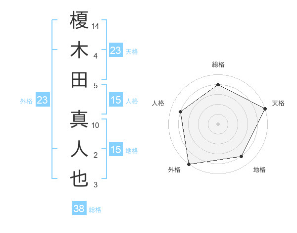 榎木田 真人也さんの外格は23画の5点!
