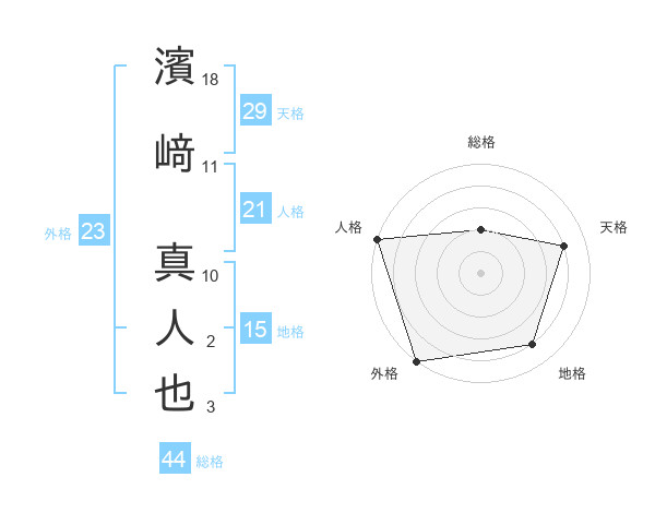 濱﨑 真人也さんを姓名の画数から五運を鑑定
