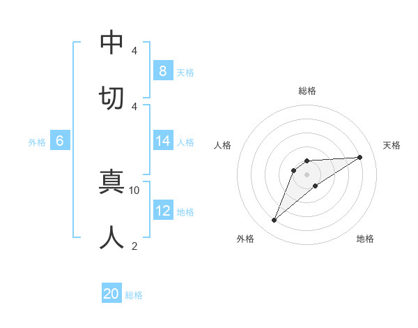 中切 真人さんの天格は8画の4点!
