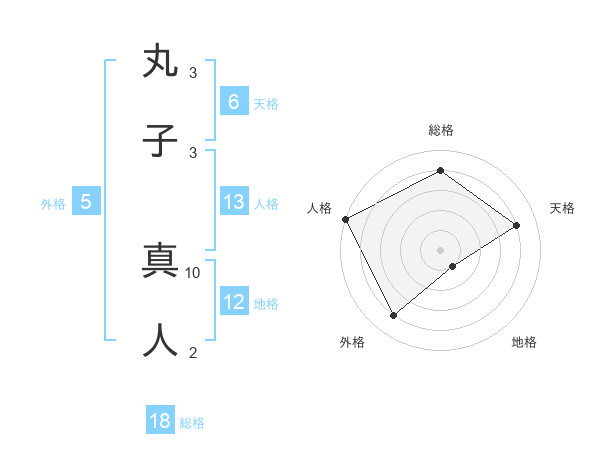 丸子 真人さんの総格は18画の4点!