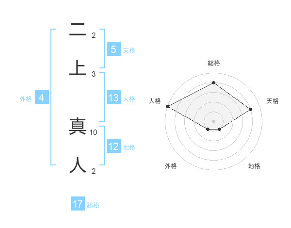 二上 真人さんの地格は12画の1点!