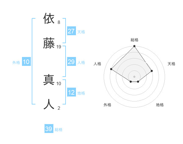 依藤 真人さんの総格は39画の5点!