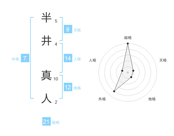 半井 真人さんの総格は21画の5点!