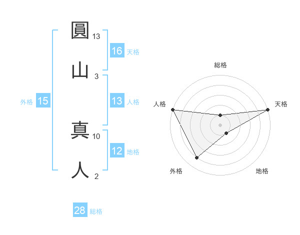 圓山 真人さんの天格は16画の5点!