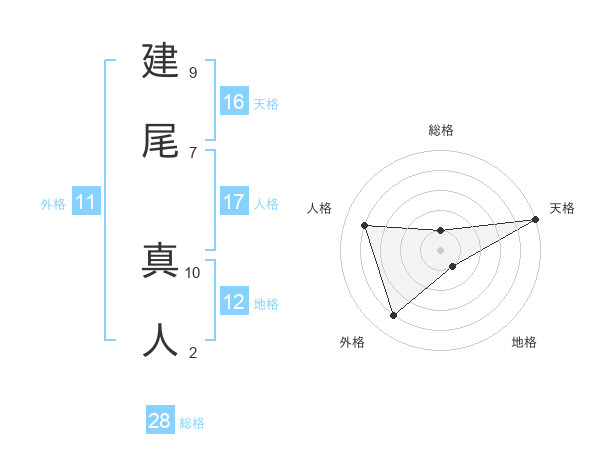 建尾 真人さんの総格は28画の1点!