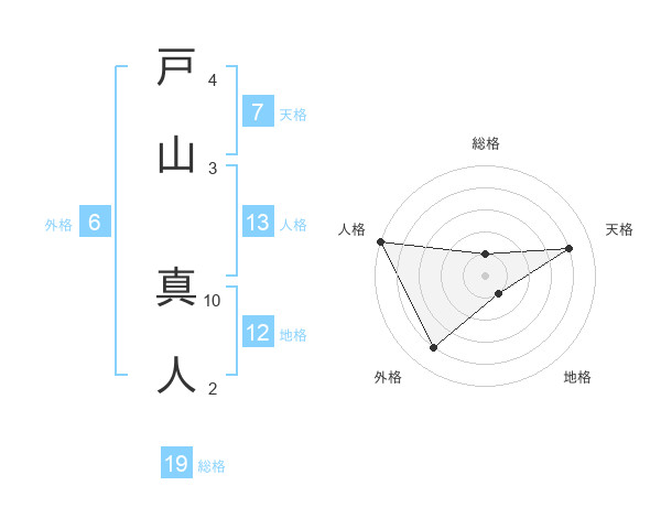 戸山 真人さんの総格は19画の1点!