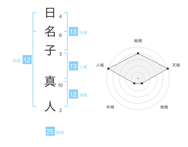 日名子 真人さんの天格は13画の5点!