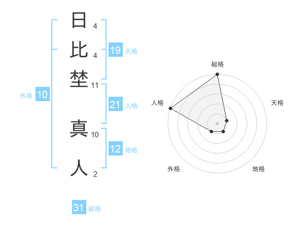 日比埜 真人さんの総格は31画の5点!