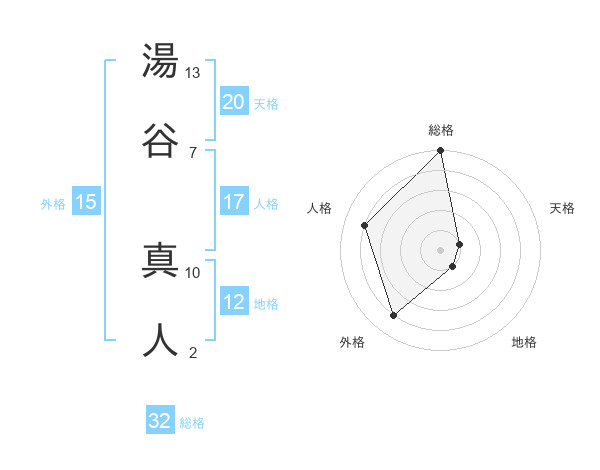 湯谷 真人さんの総格は32画の5点!