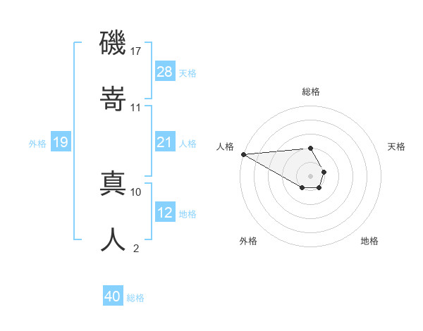 磯嵜 真人さんを姓名の画数から五運を鑑定