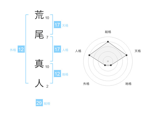 荒尾 真人さんの総格は29画の4点!
