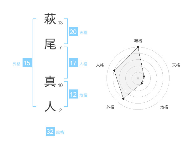 萩尾 真人さんの総格は32画の5点!