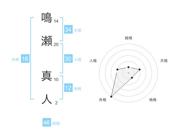 鳴瀬 真人さんの総格は46画の1点!