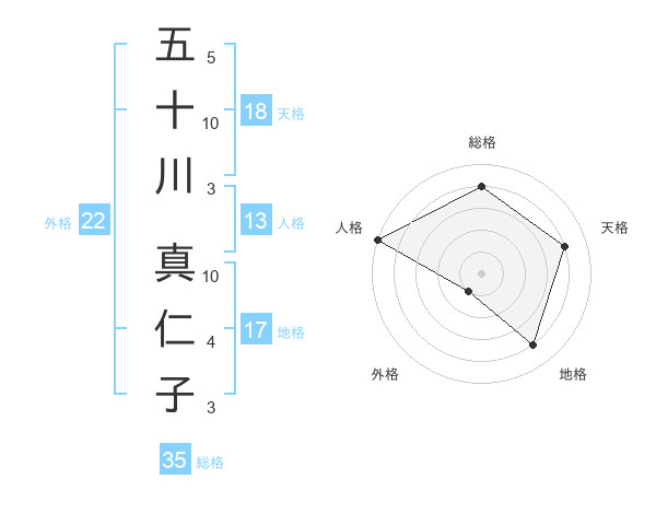 五十川 真仁子さんを姓名の画数から五運を鑑定