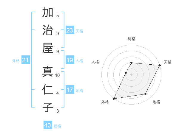 加治屋 真仁子さんを姓名の画数から五運を鑑定