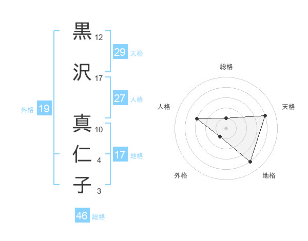黒沢 真仁子さんを姓名の画数から五運を鑑定