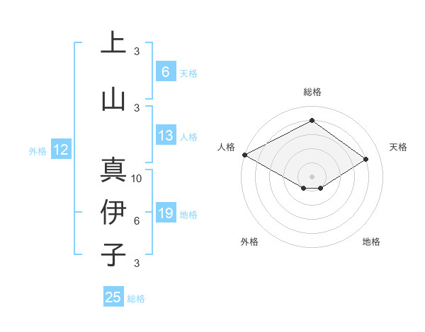 上山 真伊子さんを姓名の画数から五運を鑑定