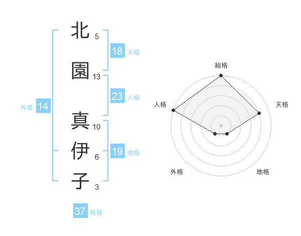北園 真伊子さんを姓名の画数から五運を鑑定