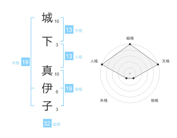 城下 真伊子さんを姓名の画数から五運を鑑定