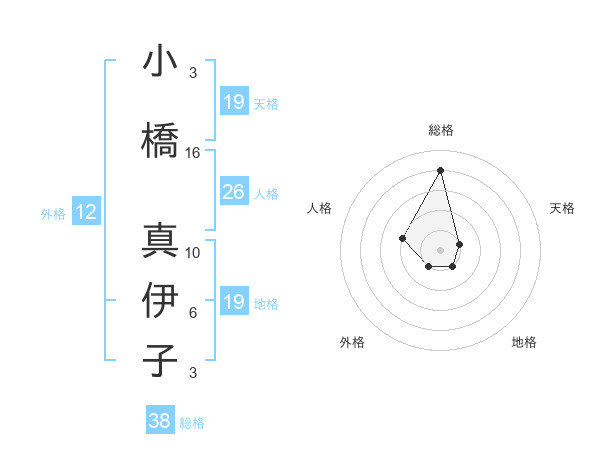 小橋 真伊子さんの総格は38画の4点!