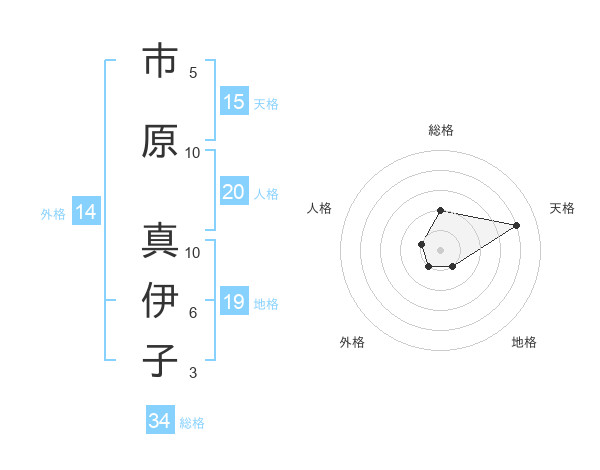 市原 真伊子さんを姓名の画数から五運を鑑定