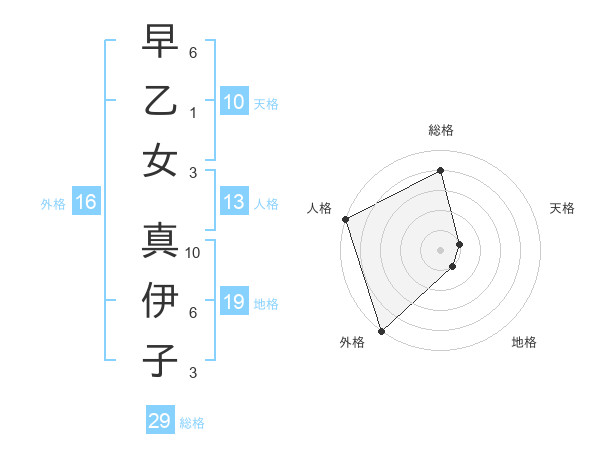 早乙女 真伊子さんを姓名の画数から五運を鑑定