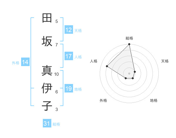 田坂 真伊子さんを姓名の画数から五運を鑑定