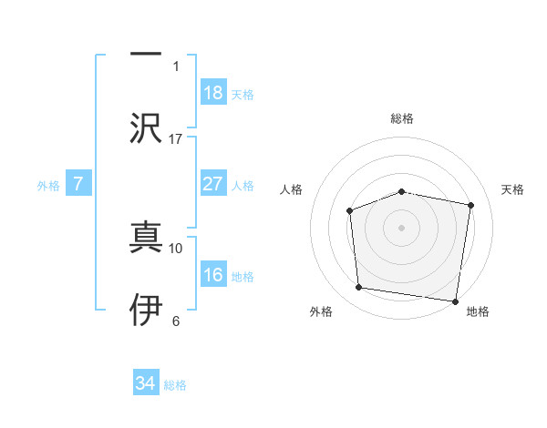 一沢 真伊さんの総格は34画の2点!