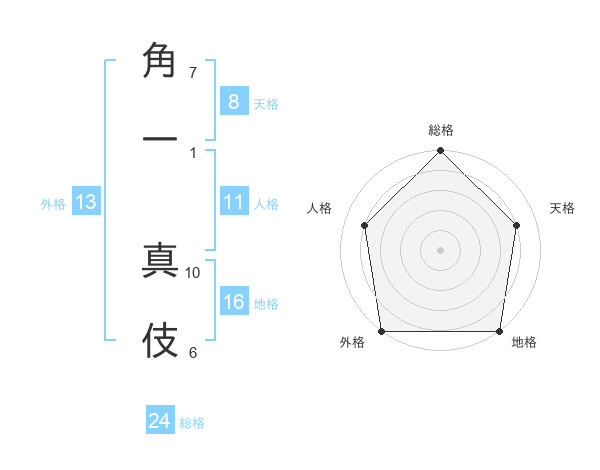 角一 真伎さんの外格は13画の5点!
