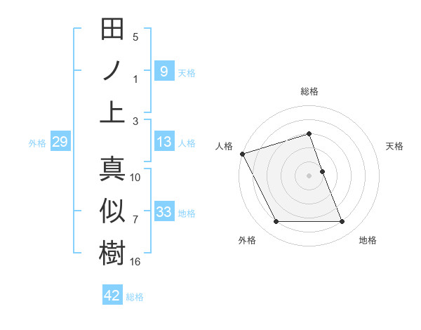 田ノ上 真似樹さんを姓名の画数から五運を鑑定
