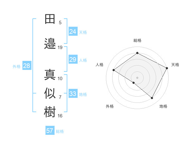 田邉 真似樹さんを姓名の画数から五運を鑑定