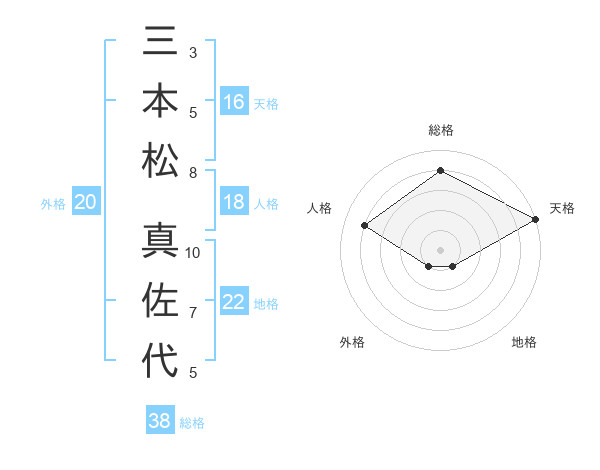 三本松 真佐代さんを姓名の画数から五運を鑑定
