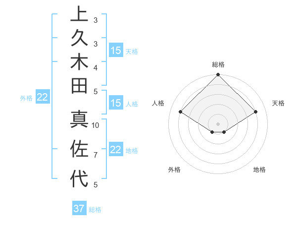 上久木田 真佐代さんを姓名の画数から五運を鑑定