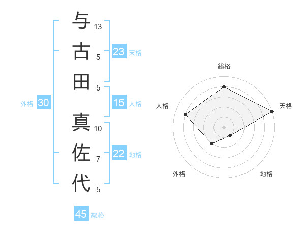 与古田 真佐代さんを姓名の画数から五運を鑑定